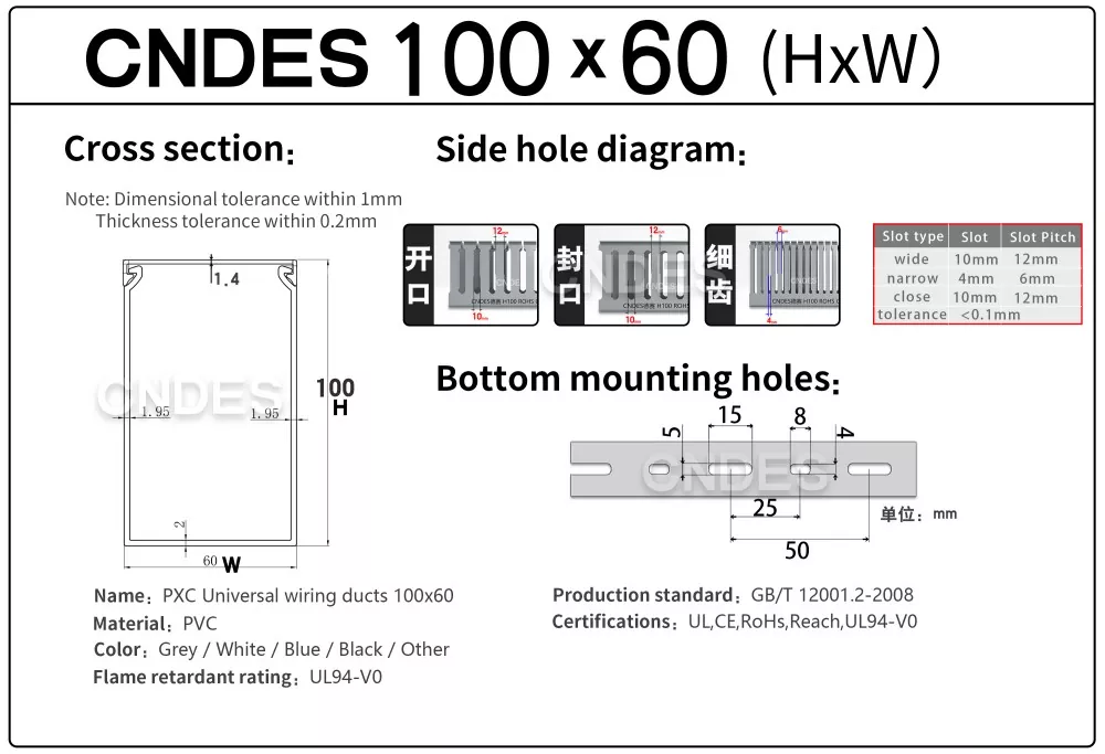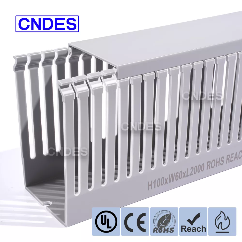 துல்லியமான ஸ்லாட்- துல்லியமான க்ரூவிங் - எலக்ட்ரிக்கல் பேனல்களுக்கான தரமான 100×60 PVC டக்ட் ஒரு சீரான பள்ளம் வடிவமைப்பைக் கொண்டுள்ளது, கேபிள்கள் எந்த நிலையிலிருந்தும் சுத்தமாக வெளியேற அனுமதிக்கிறது; தனிப்பயன் துளை வடிவங்கள் ஒரு விருப்பமாக கிடைக்கின்றன.