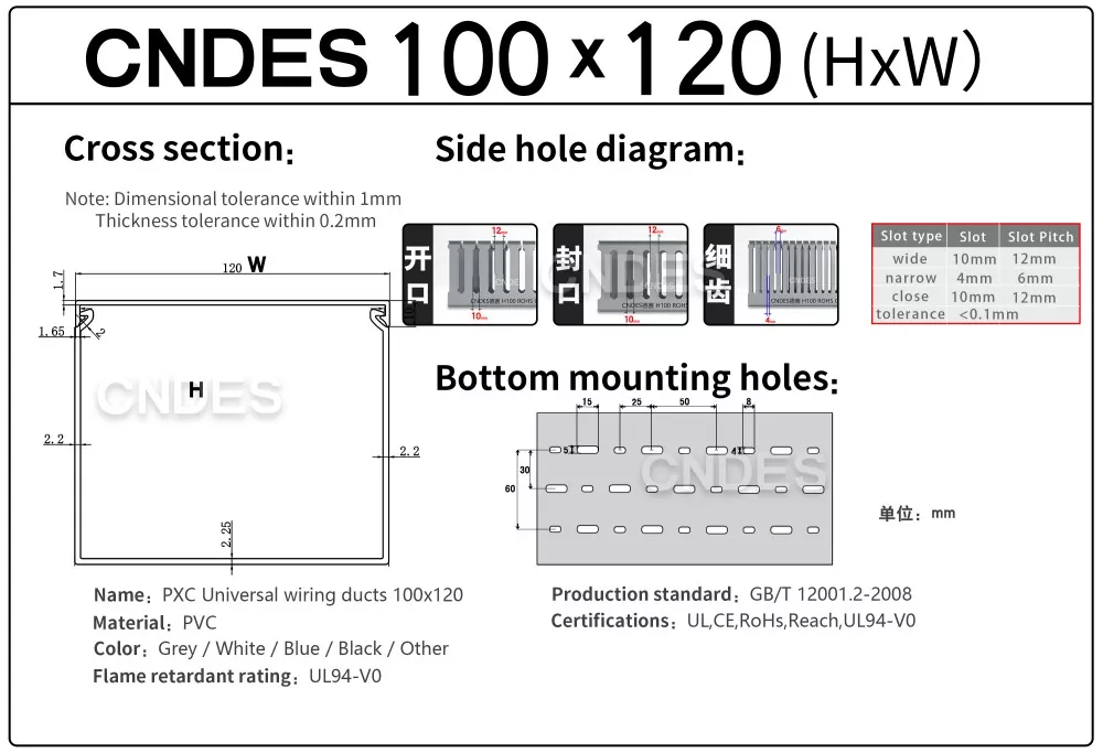 CNDES என்பது 24 வருட அனுபவமுள்ள ஒரு தொழில்முறை கேபிள் ட்ரே உற்பத்தியாளர், தனிப்பயனாக்கப்பட்ட 100மிமீ உயரம் திறந்த ஸ்லாட் PVC என்க்ளோசர் வயரிங் டக்ட்ஸ் தயாரிப்பில் நிபுணத்துவம் பெற்றது. இங்கே, நாங்கள் எங்கள் 100mm உயர் கேபிள் தட்டு தொடர் தயாரிப்புகளை அறிமுகப்படுத்துவோம்.