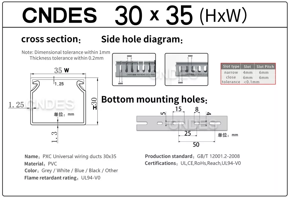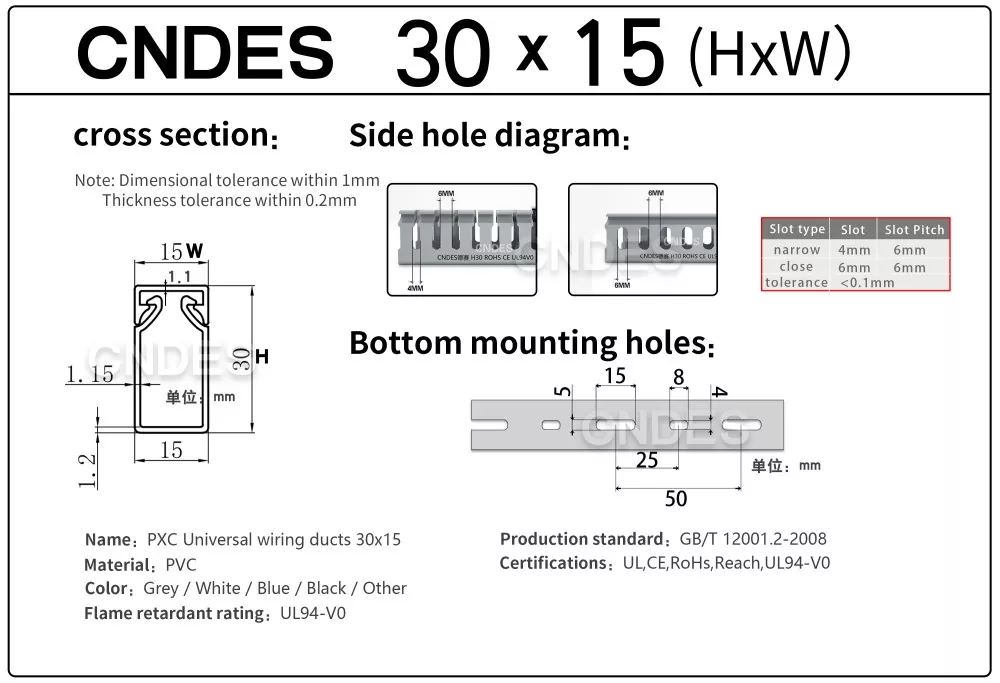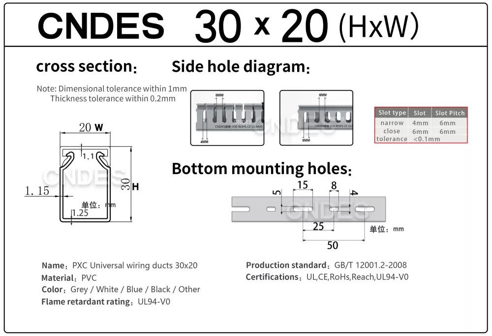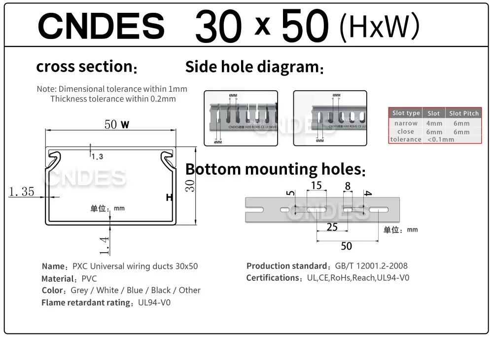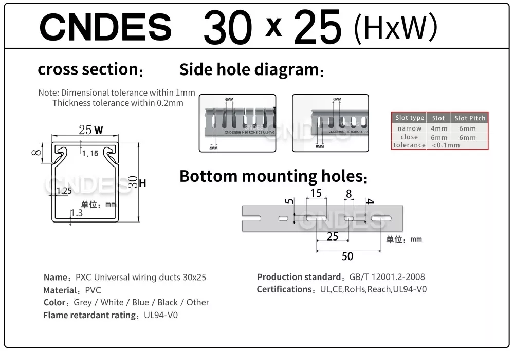 CNDES இலிருந்து தனிப்பயனாக்கப்பட்ட 30 மிமீ உயர துளையிடப்பட்ட PVC கேபிள் மேலாண்மை குழாய் பல்வேறு தொழில்துறை, வணிக மற்றும் குடியிருப்பு அமைப்புகளில் திறமையான, கச்சிதமான மற்றும் பாதுகாப்பான கேபிள் ரூட்டிங் வடிவமைக்கப்பட்டுள்ளது. இறுக்கமான இடக் கட்டுப்பாடுகள் உள்ள பயன்பாடுகளுக்கு ஏற்றது, இந்த குழாய் உங்கள் வயரிங் ஒழுங்கமைக்கப்படுவதையும், பாதுகாக்கப்படுவதையும், எளிதில் அணுகக்கூடியதாக இருப்பதையும் உறுதி செய்கிறது.
