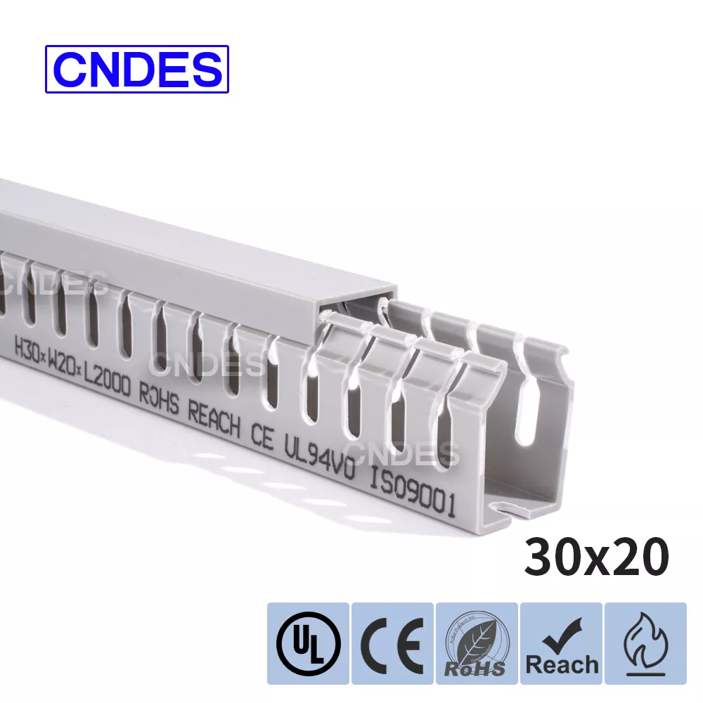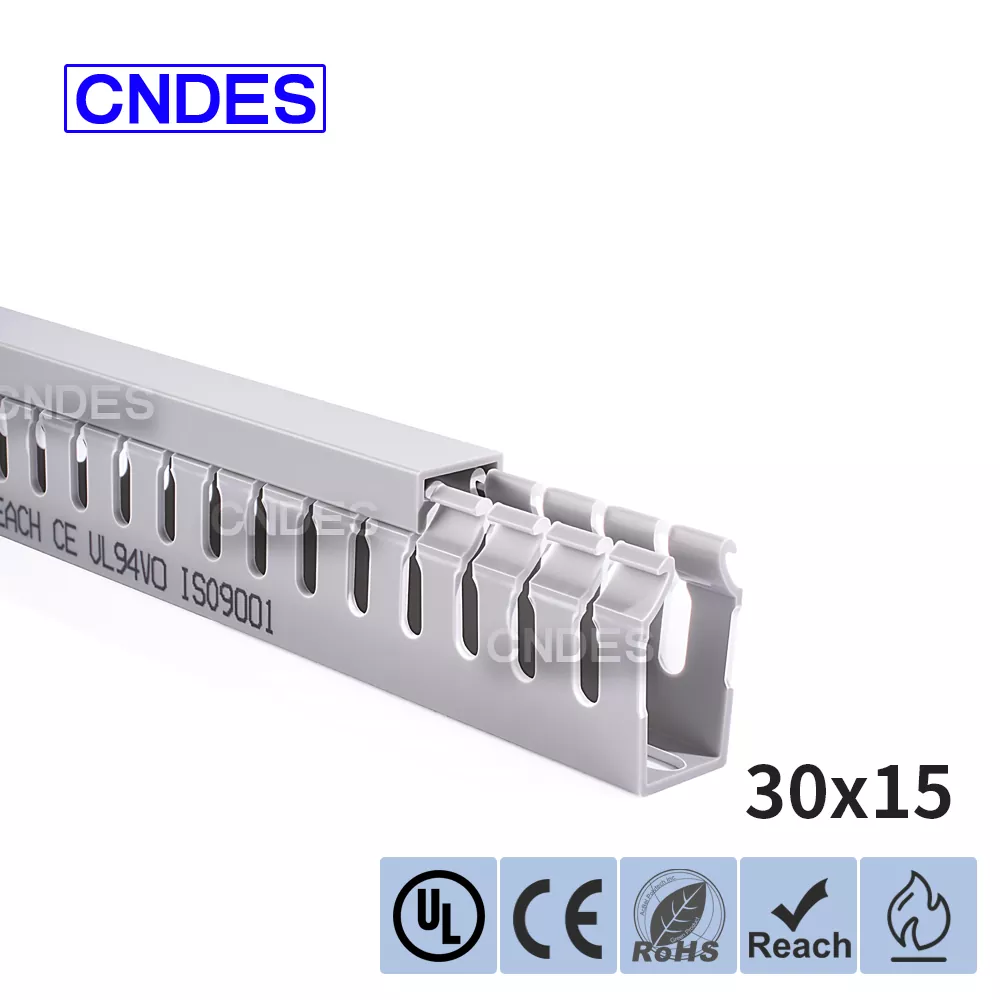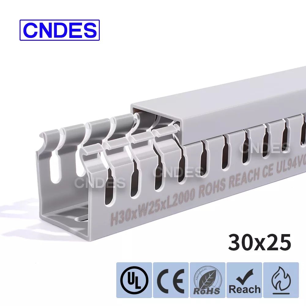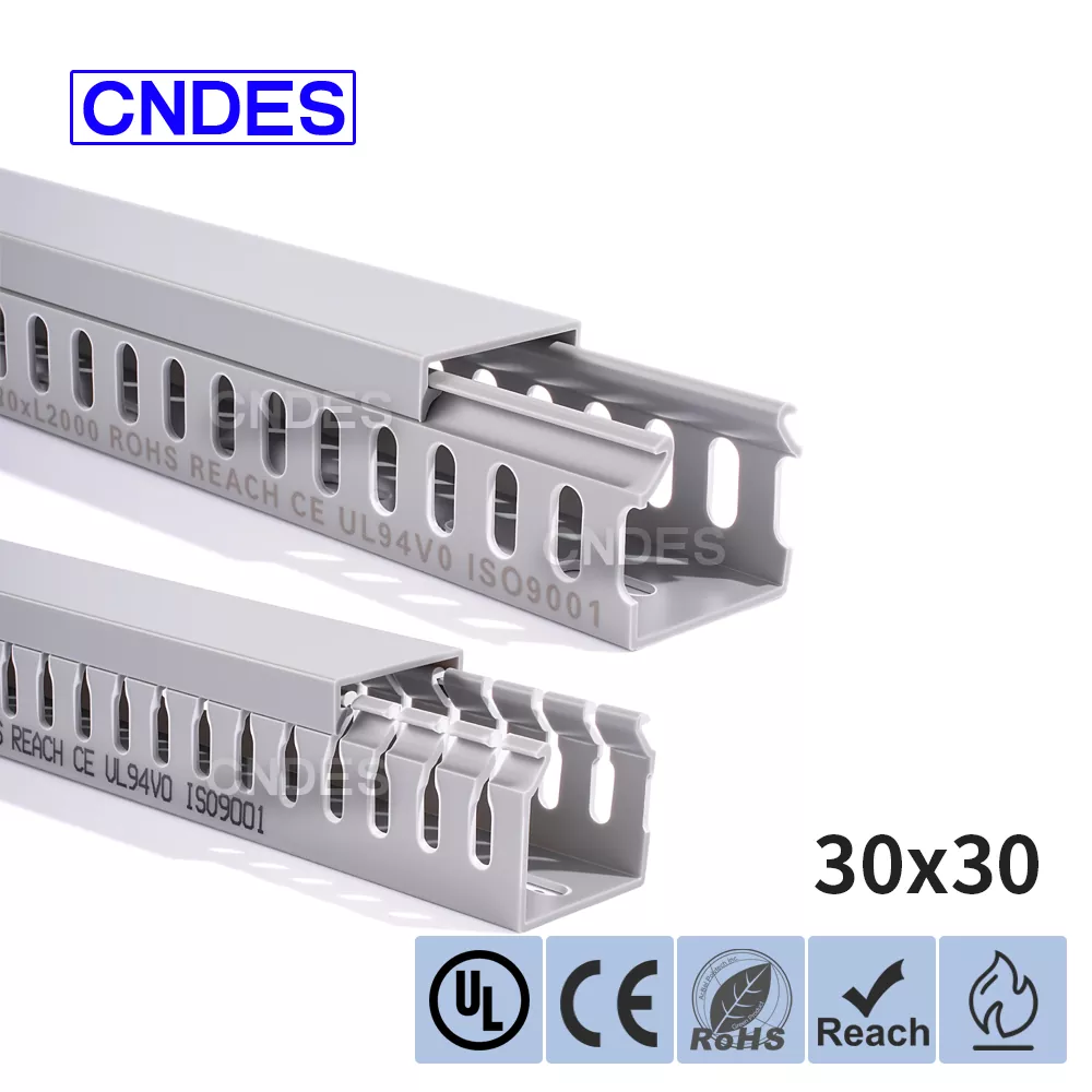 உயர் செயல்திறன் கொண்ட 30 மிமீ உயரம் துளையிடப்பட்ட PVC கேபிள் மேலாண்மை குழாய் கட்டுப்பாட்டு பேனல்கள் மற்றும் மின் அலமாரிகள், பவர் கேபிள்கள், தரவு கேபிள்கள் மற்றும் பிற வயரிங் ஆகியவற்றை ஒழுங்கமைக்க ஏற்றது. இது கம்பிகளை நசுக்குதல் அல்லது வெட்டுதல் போன்ற இயந்திர சேதங்களிலிருந்து பாதுகாக்கும் போது கேபிள் அழகியல் மற்றும் நேர்த்தியை மேம்படுத்துகிறது. இதன் வடிவமைப்பு மின்காந்த குறுக்கீட்டையும் குறைக்கிறது, மின் அமைப்புகளின் நிலைத்தன்மை மற்றும் நம்பகத்தன்மையை மேம்படுத்துகிறது.