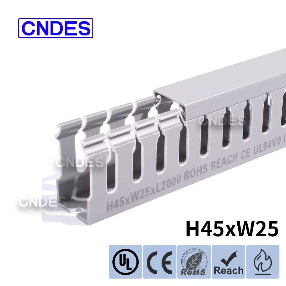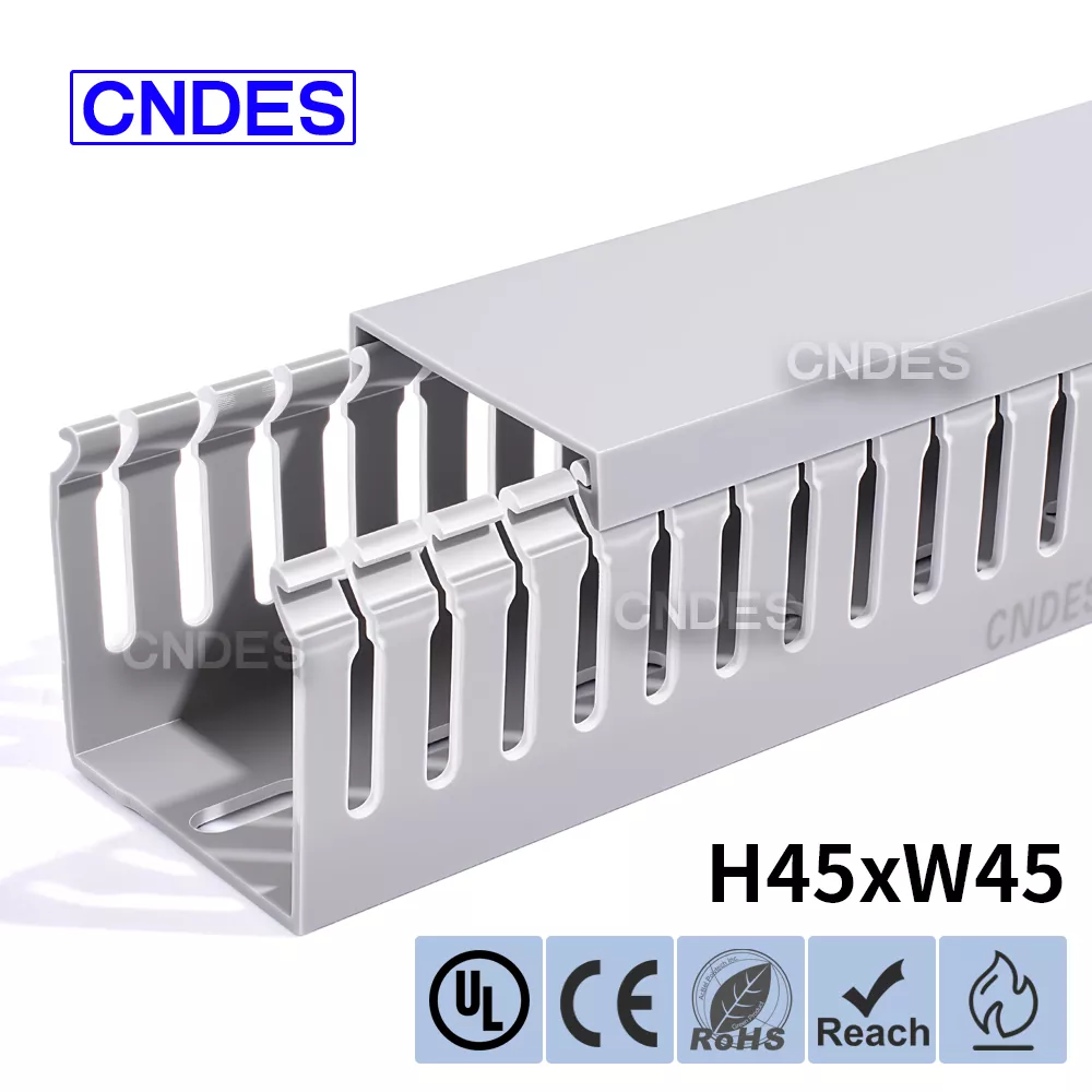 CNDES இலிருந்து தனிப்பயனாக்கப்பட்ட 45 மிமீ உயரம் துளையிடப்பட்ட PVC வயர் கவர் டக்டை அறிமுகப்படுத்துகிறது, இது பல்வேறு பயன்பாடுகளில் பயனுள்ள கேபிள் நிர்வாகத்திற்கான உங்களுக்கான தீர்வு. நீங்கள் ஒரு புதிய எலக்ட்ரிக்கல் பேனலை வடிவமைத்தாலும், உங்கள் மெஷின் வயரிங் அமைப்பை மேம்படுத்தினாலும் அல்லது உங்கள் வீட்டின் மின் அமைப்பை மேம்படுத்தினாலும், எங்களின் உயரம் துளையிடப்பட்ட PVC வயர் கவர் டக்ட் செயல்பாடு மற்றும் அழகியல் கவர்ச்சியின் சரியான சமநிலையை வழங்குகிறது.