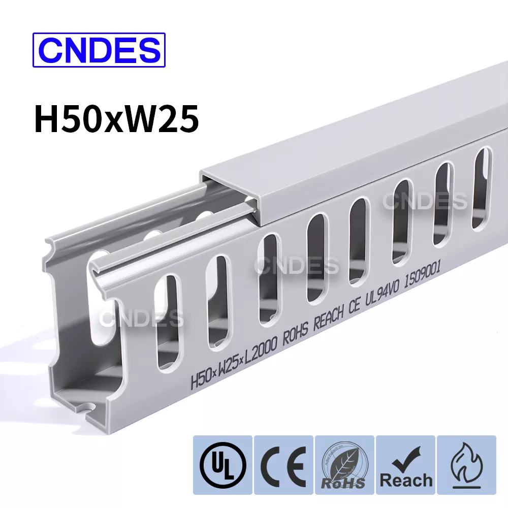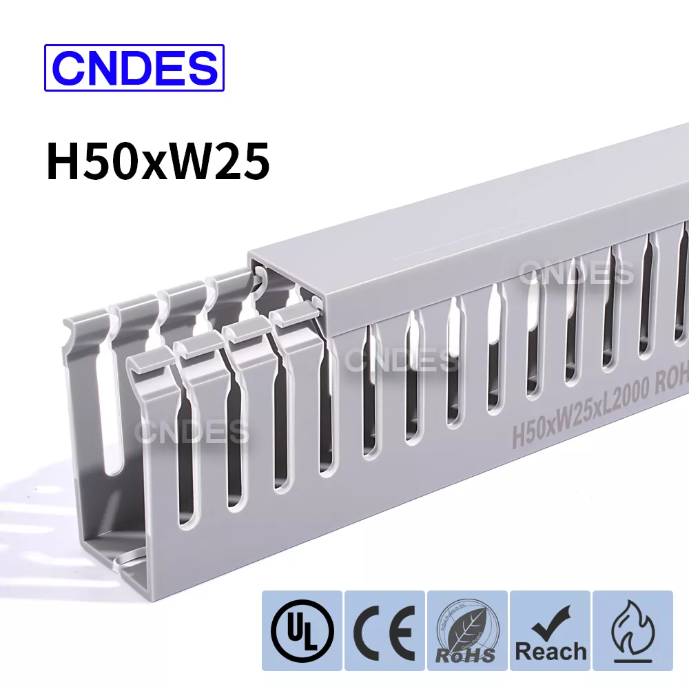 தரமான 50×25மிமீ துளையிடப்பட்ட பிவிசி எலக்ட்ரிக்கல் கேபினெட் டக்ட் சிறிய இயந்திரங்களுக்கான தொழில்முறை வயரிங் அமைப்பை வழங்குகிறது.