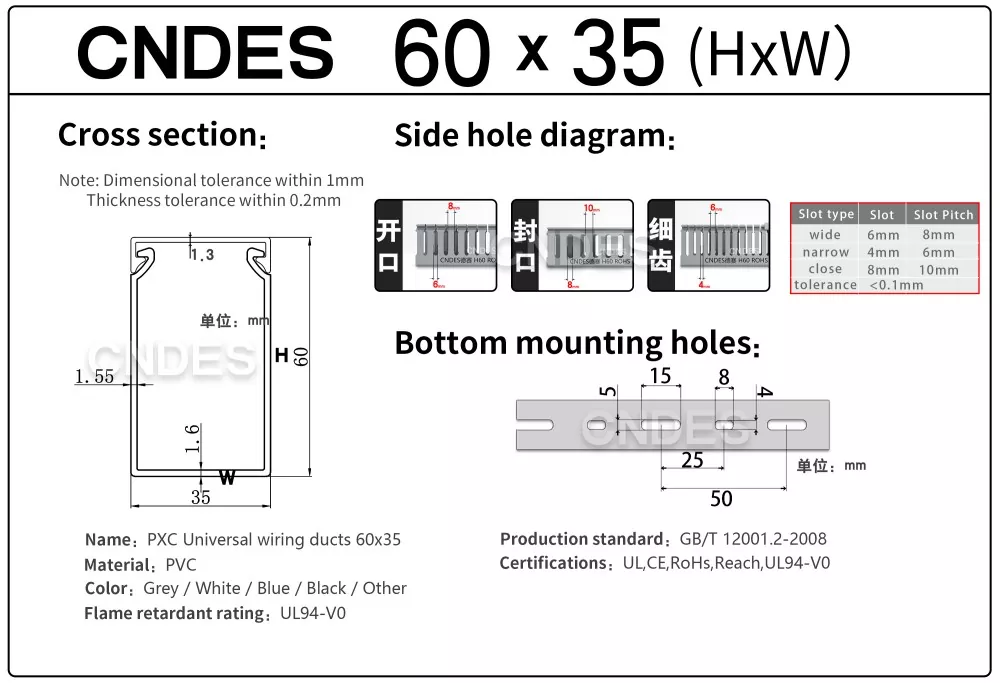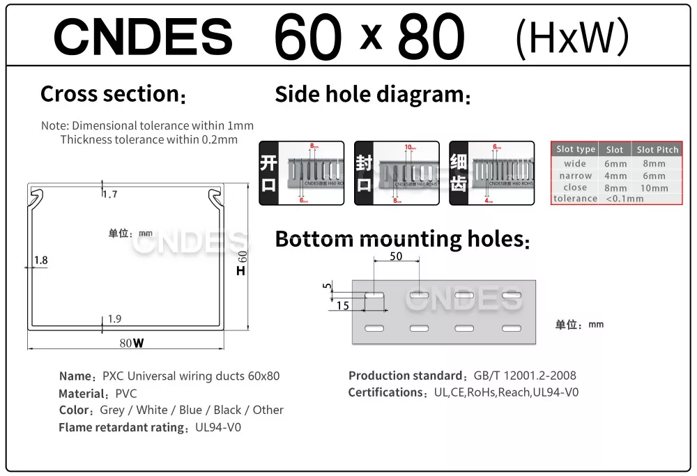 நம்பகமான தரமான 60 மிமீ உயரம் சாம்பல் துளையிடப்பட்ட பிவிசி வயரிங் டக்ட் சப்ளையரைத் தேடுகிறீர்களா? CNDES உயர்தர கேபிள் மேலாண்மை தீர்வுகளை தொழிற்சாலை-நேரடி விலையில் வழங்குகிறது.