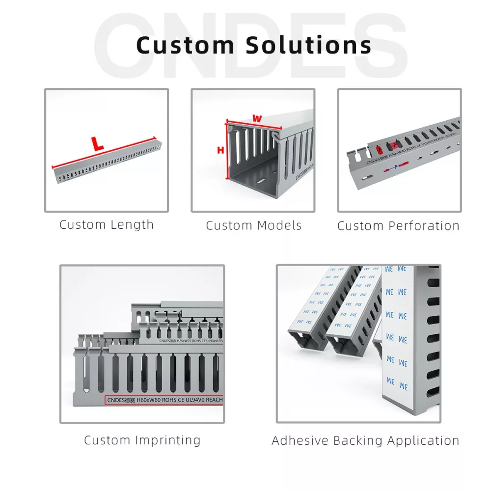 CNDES, சீனாவில் பிளாக் ஸ்லாட்டட் PVC வயரிங் டக்ட்டின் தொழில்முறை R&D மற்றும் உற்பத்தித் தொழிற்சாலையாக, வெகுஜன உற்பத்தி, கடுமையான ISO தரக் கட்டுப்பாடு மற்றும் OEM/ODM சேவை ஆகியவற்றில் நிபுணத்துவம் பெற்றது. கருப்பு உறைகள் பொதுவாக மறைக்கப்பட்ட வயரிங் (ஹோம் தியேட்டர்கள் அல்லது அலுவலகங்களுக்கு இடையே) அல்லது வெவ்வேறு செயல்பாடுகளுக்கு இடையே பயன்படுத்தப்படுகின்றன. குறைந்த மின்னழுத்தக் கோடுகள்), அதன் மூலம் மேலாண்மை செயல்திறனை மேம்படுத்துகிறது.
